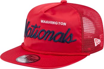 Add vintage flair to your Washington Nationals game day wardrobe with this Retro Satin Script Golfer Adjustable Hat from New Era. With its solid front panels and mesh mid and rear panels, this hat provides a comfortable blend of structure and breathability. The embroidered team wordmark pops with retro-inspired styling, making this Washington Nationals cap a true standout piece.