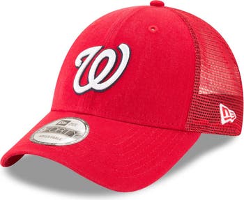 Men's New Era Red Washington Nationals Trucker 9FORTY Adjustable Snapback Hat