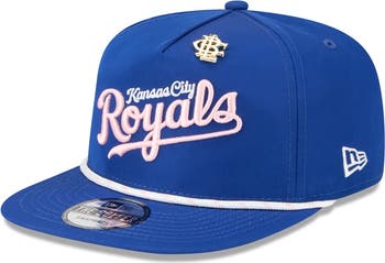 New Era partners with Big League Chew to bring Kansas City Royals fans a fun new hat for game day.This Golfer Snapback Hat features a retro look with its pinched crown and flat visor, reminiscent of classic snapbacks from the '80s and '90s. The five-panel construction, complete with mid and rear eyelets, ensures breathability, while the rope embellishment at the visor and Big League Chew pin add a touch of vintage charm.
