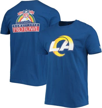 Celebrate the Los Angeles Rams' legacy with the Men's New Era Royal Los Angeles Rams 1990 Pro Bowl T-Shirt. This classic crew neck tee features screen print graphics that proudly display the Rams' iconic logo, honoring the team's rich history and unwavering fan base. Whether you're cheering from the stands or representing your team off the field, this T-shirt is the perfect way to show your unwavering support for the Los Angeles Rams.