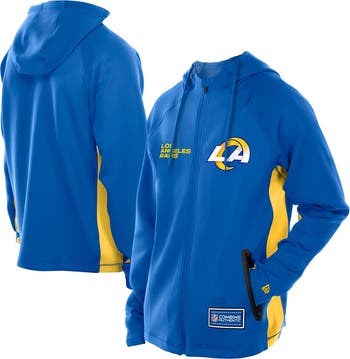 Stay warm while repping your favorite NFL franchise with this Los Angeles Rams Combine Authentic Raglan Scuba Full-Zip Hoodie from New Era. With raglan sleeves and a drawstring hood design, this midweight jacket provides effortless mobility and a personalized fit that keeps you warm without getting in your way. The team logo and wordmark on the front proudly display your allegiance to the Los Angeles Rams, making this a must-have for any dedicated fan.