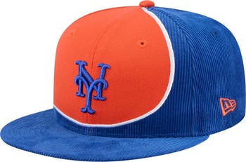 Men's New Era Royal/Orange New York Mets Retro Split Corduroy Snapback Hat