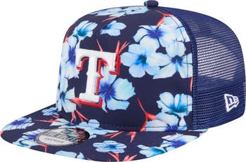 Take your Texas Rangers fandom on an adventure with this New Era Adventure Pattern Golfer Trucker Snapback Hat. The Golfer silhouette gives this cap a retro look and feel thanks to its semi-structured build, pinched crown and flat visor. With an embroidered Texas Rangers logo and sublimated floral print, this cap is as stylish as it is comfortable.