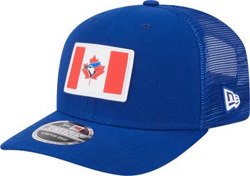 Show your Toronto Blue Jays spirit with this New Era Flag 9SEVENTY Stretch-Snap Hat. The 9SEVENTY provides a modern adjustable fit and versatile style with its structured crown, semi-curved visor and performance stretch sweatband. The mesh mid and rear panels offer breathability, while the solid front panels feature a heat-sealed applique that showcases your Toronto Blue Jays pride.