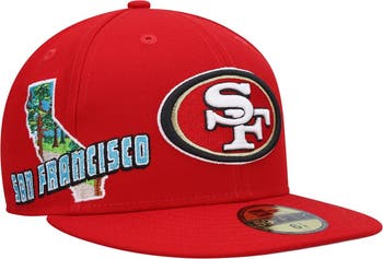 Show love for your favorites and the place they call home with this bold San Francisco 49ers Stateview 59FIFTY fitted hat from New Era. Along with the franchise's unmistakable logo embroidered on the front panels, this cap features a colorful postcard-style rendition of their home state on the crown to give your enthusiasm added authenticity and style. Plus, the gray undervisor offers a subtle contrast against the vibrant team color.