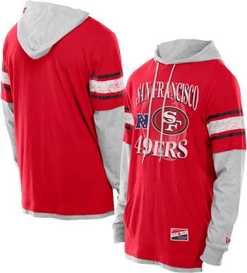 Show off your die-hard team pride with this unique San Francisco 49ers Twofer Layered Long Sleeve Hoodie T-Shirt from New Era. The team graphic printed at the center chest features distressed details, adding a vintage touch to your look. Whether you're at the stadium or relaxing at home, this hoodie tee is a must-have for any San Francisco 49ers fan.