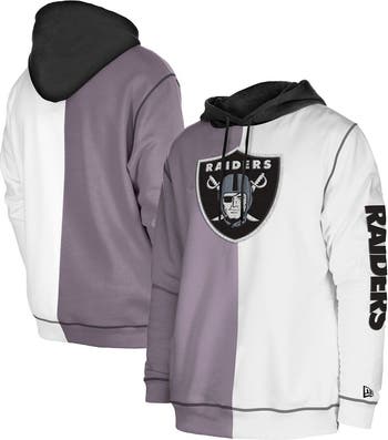 Men's New Era Silver/White Las Vegas Raiders Third Down Split Raglan Pullover Hoodie