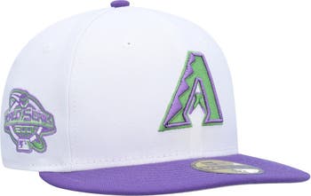 Add a snazzy hat to your lineup of Arizona Diamondbacks gear by grabbing this Side Patch 59FIFTY fitted hat from New Era. The purple and green embroidery pops off the solid white panels for a bold addition to any game day look. The fitted construction provides a consistent wear each time you reach for this cap.