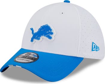 Men's New Era White/Blue Detroit Lions 2025 NFL Training Camp 39THIRTY Flex Hat