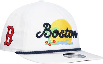 Hit the links in style with this Boston Red Sox Paradise Golfer Snapback Hat from New Era. The Golfer cap features a semi-structured fit with a pinched crown and flat visor, evoking the classic snapback style of the '80s and '90s. Showcasing a tropical team name graphic embroidered in raised detail on the crown, this hat lets you rep the Boston Red Sox wherever you go.