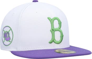 Add a snazzy hat to your lineup of Brooklyn Dodgers gear by grabbing this Side Patch 59FIFTY fitted hat from New Era. The purple and green embroidery pops off the solid white panels for a bold addition to any game day look. The fitted construction provides a consistent wear each time you reach for this cap.