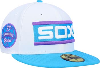Add an extra bit of Chicago White Sox fandom to your outfit with this Vice 59FIFTY hat from New Era. The fitted construction provides the exact fit you're after, while the embroidery pops off the solid white panels. It also includes a bold Comiskey Park 75th Anniversary side patch, so you'll be able to flaunt your Chicago White Sox loyalty with ease.