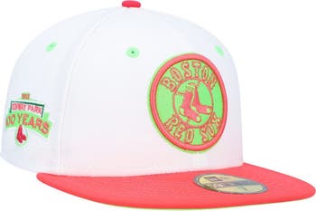 Upgrade your headwear game by grabbing this Boston Red Sox Fenway Park 100th Anniversary Strawberry Lolli 59FIFTY Fitted Hat from New Era. Highlighting your loyalty to the team will be super easy thanks to the distinctive Boston Red Sox graphics embroidered on the crown.