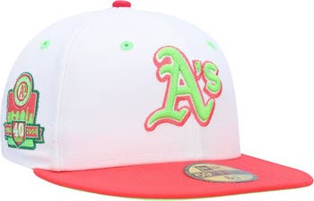 Upgrade your headwear game by grabbing this Oakland Athletics 40th Anniversary Strawberry Lolli 59FIFTY Fitted Hat from New Era. Highlighting your loyalty to the team will be super easy thanks to the distinctive Oakland Athletics graphics embroidered on the crown.