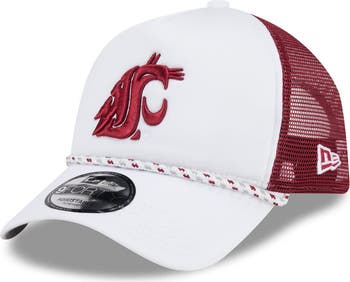 Men's New Era White/Crimson Washington State Cougars Court Sport Foam A-Frame 9FORTY Adjustable Trucker Hat