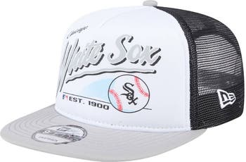 Express your love for the Chicago White Sox in vintage style with this Retro Script Trucker 9FIFTY Snapback Hat from New Era. This stylish snapback features a classic high crown and flat bill, two-toned colors and solid front panels showcasing a stylized Chicago White Sox graphic and wordmark for throwback flair. The mesh mid and rear panels provide breathability, making it perfect for all-day wear.