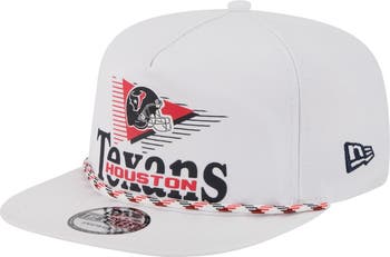 Get ready for kickoff with this Houston Texans Collide Golfer Snapback Hat from New Era. The Golfer's silhouette offers a semi-structured, retro look with a pinched crown and flat visor, reminiscent of classic snapbacks from the '80s and '90s. Puff print Houston Texans graphics stand out against the crisp backdrop, making it clear who you're rooting from the tailgate to the end of the game.