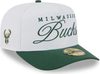 Show off your excitement for the future of the Milwaukee Bucks with this 2025 NBA Draft A-Frame 59FIFTY Fitted Hat from New Era.This hat features New Era's signature craftsmanship, with a high-profile pinched crown and a single-panel front for a distinctive look. The raised embroidered graphics showcase your Milwaukee Bucks pride, making it the perfect addition to your game-day ensemble.