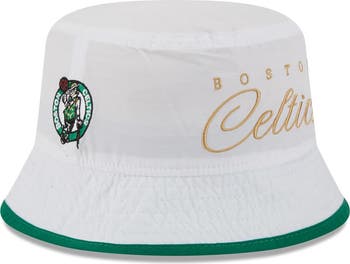 Men's New Era White/Kelly Green Boston Celtics 2025 NBA Draft Nylon Bucket Hat