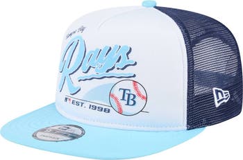 Men's New Era White/Light Blue Tampa Bay Rays Retro Script Trucker 9FIFTY Snapback Hat