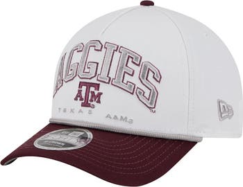 Top off your game day fit with this Texas A&M Aggies Arch Two-Tone Rope 9FORTY A-Frame M-Crown Adjustable Hat by New Era. It features a high-profile pinched shape and unmistakable look that will make you stand out. The solid front panel and mid and rear panels with eyelets offer breathable comfort, and the rope embellishment across the visor adds a vintage touch that shows your Texas A&M Aggies pride.