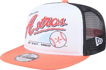 Express your love for the Houston Astros in vintage style with this Retro Script Trucker 9FIFTY Snapback Hat from New Era. This stylish snapback features a classic high crown and flat bill, two-toned colors and solid front panels showcasing a stylized Houston Astros graphic and wordmark for throwback flair. The mesh mid and rear panels provide breathability, making it perfect for all-day wear.