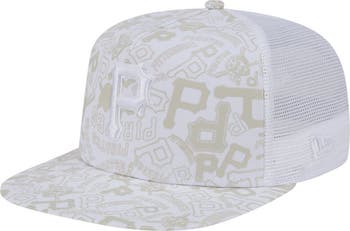 Men's New Era White Pittsburgh Pirates Logo Dunes A-Frame Trucker 9FIFTY Snapback Hat