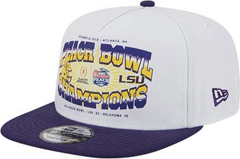 Celebrate LSU Tigers gridiron glory with this New Era Retro Champions 9FIFTY Snapback Hat. Relive the thrilling victory over Oklahoma in the 2019 Peach Bowl game with printed graphics that include date, score and team logos. The classic snapback design features a high-profile pinched crown and a single-panel front, offering a bold and stylish look. Eyelets in the mid and rear panels provide added breathability, ensuring comfort throughout the day. Designed with a one-size-fits-most adjustable snapback closure, this hat is the perfect piece of headwear to display your LSU Tigers fandom at the game or to keep as a collectable.