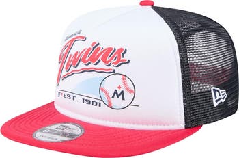 Express your love for the Minnesota Twins in vintage style with this Retro Script Trucker 9FIFTY Snapback Hat from New Era. This stylish snapback features a classic high crown and flat bill, two-toned colors and solid front panels showcasing a stylized Minnesota Twins graphic and wordmark for throwback flair. The mesh mid and rear panels provide breathability, making it perfect for all-day wear.