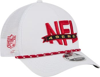 Show off your die-hard San Francisco 49ers loyalty with this NFL 9FORTY Adjustable Trucker Hat from New Era.With the A-Frame design merging the front two crown panels into one, this hat creates a high-profile pinched shape and an unmistakable look. The four mesh mid and rear panels deliver essential breathability and style, while the embroidered graphics with raised details across the front boldly display your team allegiance.