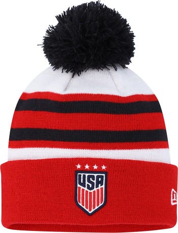 Men's New Era White USWNT Team Cuffed Knit Hat with Pom