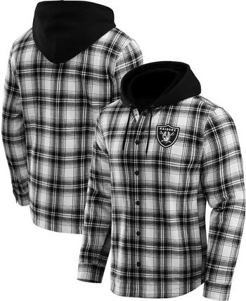 Men's NFL x Darius Rucker Collection by Fanatics Black Las Vegas Raiders Plaid Flannel Quilted Full-Snap Hooded Shacket
