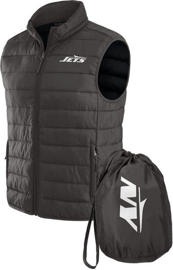 Take the New York Jets with you on the road in this Packable Full-Zip Vest from a collaboration between the NFL and the Darius Rucker Collection by Fanatics. This packable vest is the perfect choice for a day on the go. It features an embroidered logo at the left chest and a screen-printed team wordmark on the included travel bag. It's the perfect way to show your team pride and makes for a great layering option.