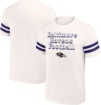 The Men's NFL x Darius Rucker Collection by Fanatics Cream Baltimore Ravens Vintage T-Shirt is a timeless tribute to your unwavering Baltimore Ravens fandom. Its vintage design, featuring screen-printed graphics, evokes the rich history of the Ravens while showcasing your unwavering support. Made from soft cotton, this T-shirt offers comfort and breathability, making it perfect for game days or any day you want to represent the Baltimore Ravens.