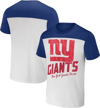 The Men's NFL x Darius Rucker Collection by Fanatics Cream New York Giants Colorblocked T-Shirt is a stylish way to show your support for the New York Giants. The distressed screen print graphics give it a vintage look, while the crew neck and cotton-polyester blend provide comfort and durability. Whether you're cheering on the Giants at the stadium or just relaxing at home, this t-shirt is sure to become a favorite.