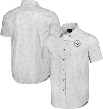 Men's NFL x Darius Rucker Collection by Fanatics White Pittsburgh Steelers Woven Short Sleeve Button Up Shirt