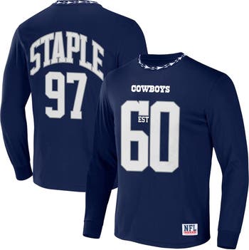 The Men's NFL x Staple Navy Dallas Cowboys Core Team Long Sleeve T-Shirt is a must-have for any devoted Dallas Cowboys fan. With screen-printed graphics, this shirt proudly displays your allegiance to the Dallas Cowboys and the NFL. Made from comfortable cotton, this long-sleeve t-shirt is perfect for game day or any day you want to show your support for the Dallas Cowboys.