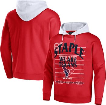The Men's NFL x Staple Navy Houston Texans Throwback Vintage Wash Pullover Hoodie is a must-have for devoted Houston Texans fans. Crafted from a cotton and polyester blend, this midweight hoodie is perfect for moderate temperatures. Screen printed graphics proudly display unwavering support for the Houston Texans, making it ideal for representing your team on game day or any day.