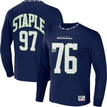 The Men's NFL x Staple Navy Seattle Seahawks Core Team Long Sleeve T-Shirt is a must-have for any devoted Seattle Seahawks fan. With its screen printed graphics, this cotton tee proudly displays your unwavering support for the Seahawks. Whether you're cheering from the stands or simply showing your team spirit, this long sleeve t-shirt is the perfect way to represent the Seattle Seahawks and the NFL.