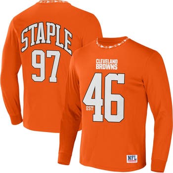 The Men's NFL x Staple Orange Cleveland Browns Core Team Long Sleeve T-Shirt is a must-have for any devoted Cleveland Browns fan. With its screen printed graphics, this shirt proudly displays your unwavering support for the Browns. Made from comfortable cotton, this long sleeve tee is perfect for game day or any day you want to show off your team spirit. Whether you're cheering from the stands or watching from home, this shirt will keep you comfortable and stylish while you root for the Cleveland Browns.