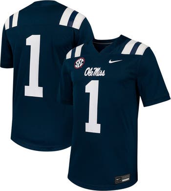 Prepare to cheer on your Ole Miss Rebels with this sharp # Untouchable Football Jersey from Nike. This Ole Miss Rebels jersey boasts a loose fit, allowing for comfortable movement on and off the field. The combination of stitched fabric applique at the collar and a satin woven jock tag adds a touch of sophistication to this classic football jersey.