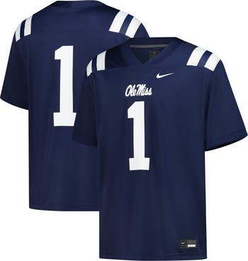 Prepare to cheer on your Ole Miss Rebels with this sharp # Untouchable Football Jersey from Nike. This Ole Miss Rebels jersey boasts a loose fit, allowing for comfortable movement on and off the field. The combination of stitched fabric applique at the collar and a satin woven jock tag adds a touch of sophistication to this classic football jersey.