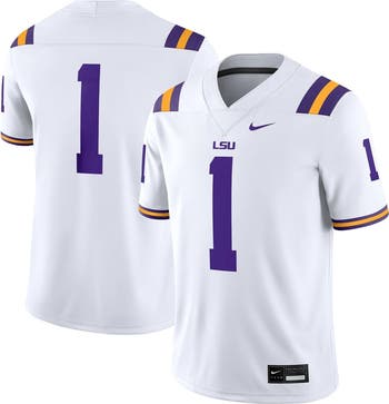 Elevate your team spirit with this LSU Tigers Game jersey from Nike. This jersey is crafted with Dri-FIT technology to wick away moisture, keeping you cool and comfortable whether you're on the field or cheering from the stands. The heat-applied numbers and team details showcase your LSU Tigers pride in a durable, eye-catching style, making it the perfect way to represent your team on game day.