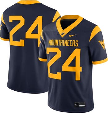 Complete your West Virginia Mountaineers game day look with this #24 Game Jersey from Nike. Made with 100% recycled polyester, this jersey embodies sustainability without compromising performance. The front yoke seam adds a classic touch to this comfortable jersey, letting you represent the Mountaineers with pride. Thanks to Nike Dri-FIT technology, this jersey will keep you feeling dry and comfortable as you cheer on your team.