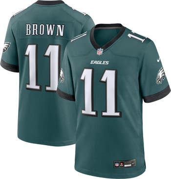 Rep the on-field look of your favorite Philadelphia Eagles player with this A.J. Brown Game Jersey from Nike. Its heat-sealed name, numbers and team details provide a kickoff-ready aesthetic while also offering a comfortable, lightweight feel. Designed for ease of movement, this jersey has a versatile tailored fit and features mesh side panels for added ventilation as you celebrate every big play by the Philadelphia Eagles this season.