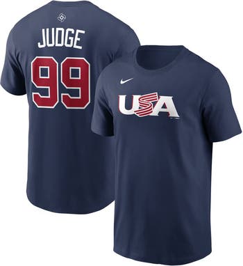 Show your unwavering support for Aaron Judge and USA Baseball as they compete on the world stage in the 2026 World Baseball Classic. This Nike Name and Number T-Shirt is inspired by the jersey design of your favorite team. With a classic fit, this lightweight Nike tee provides optimal comfort and a relaxed feel, perfect for cheering on USA Baseball from the stands or from afar.