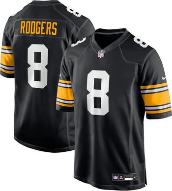 This Aaron Rodgers Nike Game Jersey is an essential piece of gear for any Pittsburgh Steelers fan looking to highlight their favorite player. The screen print name, number and team details provide a kickoff-ready look that elevates your excitement for game day. Made with comfort in mind, this Pittsburgh Steelers Alternate replica jersey delivers a standard, lightweight fit and features breathable mesh side panels for added ventilation.