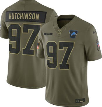 Represent your favorite Detroit Lions player in honor of our nation's heroes with this Aidan Hutchinson 2025 Salute to Service Limited Jersey by Nike. It showcases military-inspired team details, an American flag patch and smooth numbers. Crafted from breathable double pique fabric with sweat-wicking Dri-FIT technology, this Aidan Hutchinson jersey provides premium comfort while you join the Detroit Lions in supporting those who bravely serve. The NFL does not profit from the sale of Salute to Service products. Charitable contributions are awarded by the NFL Foundation to the NFL's Salute to Service nonprofit military partners.