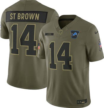 Represent your favorite Detroit Lions player in honor of our nation's heroes with this Amon-Ra St. Brown 2025 Salute to Service Limited Jersey by Nike. It showcases military-inspired team details, an American flag patch and smooth numbers. Crafted from breathable double pique fabric with sweat-wicking Dri-FIT technology, this Amon-Ra St. Brown jersey provides premium comfort while you join the Detroit Lions in supporting those who bravely serve. The NFL does not profit from the sale of Salute to Service products. Charitable contributions are awarded by the NFL Foundation to the NFL's Salute to Service nonprofit military partners.