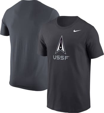 Showcase your Falcons pride while honoring the newest branch of the U.S. military with this Nike Black Air Force Falcons Space Force Rivalry T-Shirt. As a top-tier academic institution and a perennial contender in collegiate athletics, the Air Force Falcons represent the pinnacle of dedication and excellence. This classic-fit tee offers a comfortable feel, perfect for cheering on the Falcons whether you're at Falcon Stadium or watching from home. The rib-knit neckline helps prevent stretching, ensuring this t-shirt maintains its shape and displays your Falcons spirit for years to come.